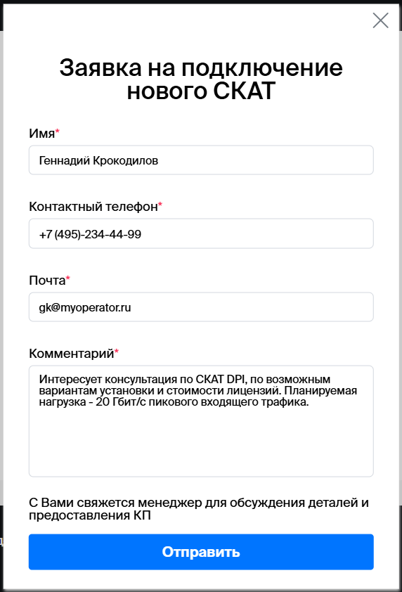 Для подачи заявки на подключение нового сервера СКАТ через Личный кабинет нужно: