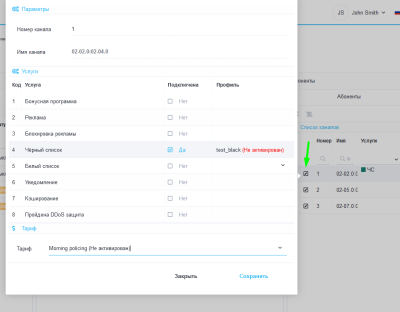 Откроется форма, где можно подключать и отключать услуги выбранным каналам.