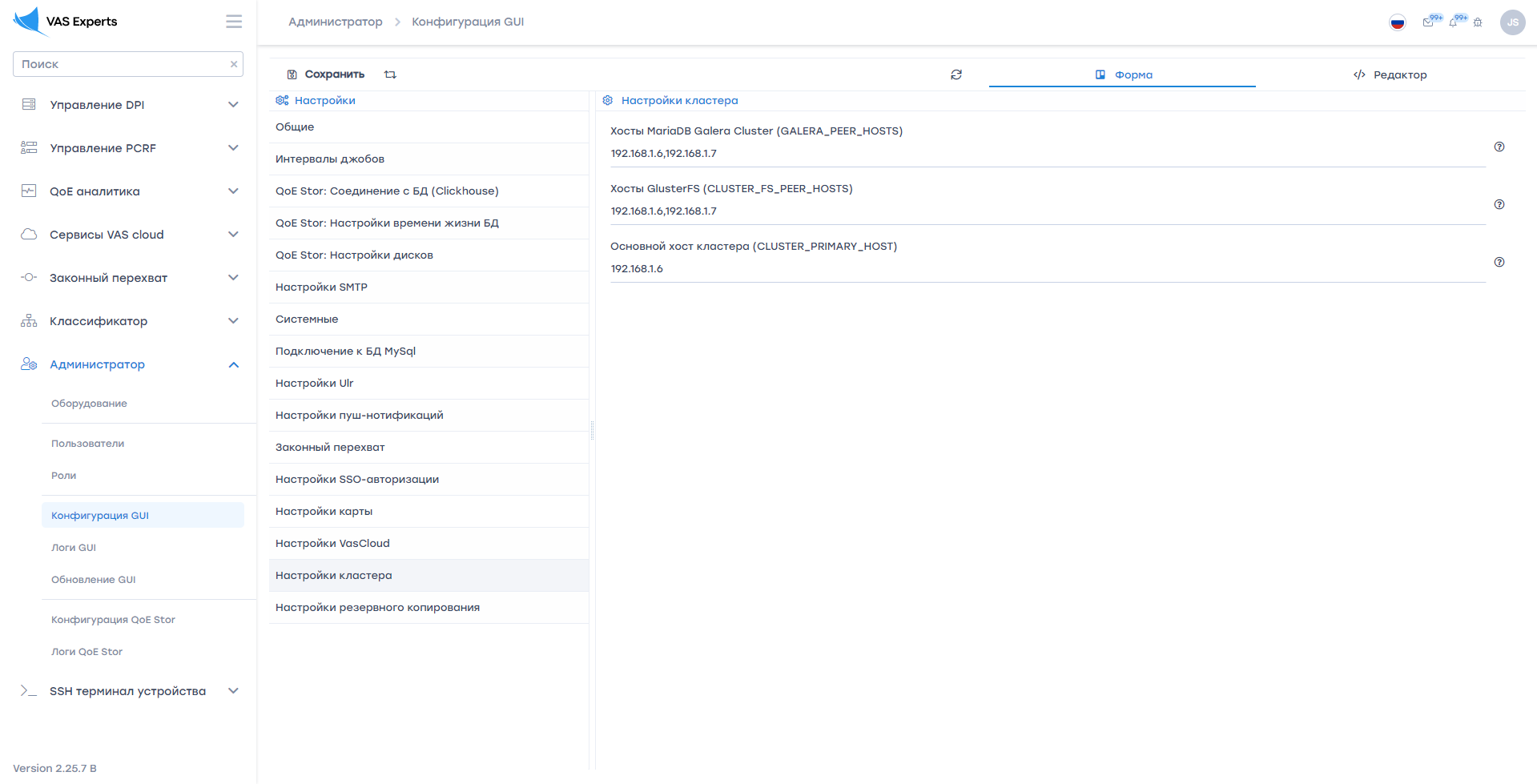 Все настройки можно произвести в .env файле dpiui2 или в разделе Конфигурация GUI > Настройки кластера.