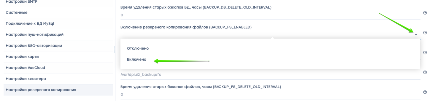 - BACKUP_FS_INTERVAL_HOURS - временной интервал резервного копирования файлов, в часах. (Значение по умолчанию - 24)