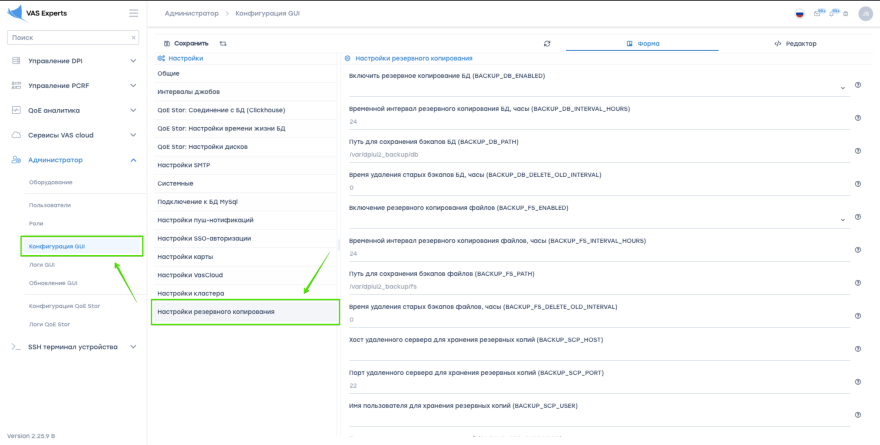 - BACKUP_DB_PATH - путь для сохранения бэкапов БД. (Путь по умолчанию: /var/dpiui2_backup/db)
