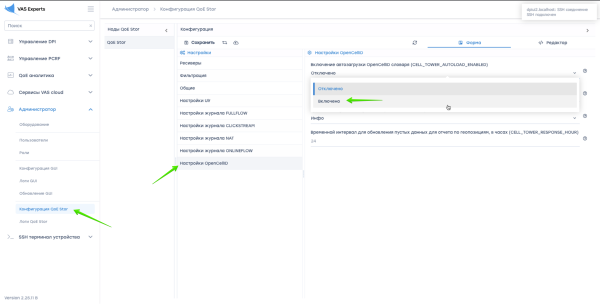 Что бы включить включить автозагрузку словаря OpenCellID выберите "Включено".