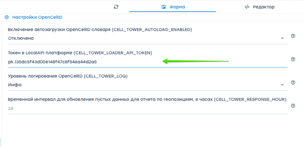 - CELL_TOWER_AUTOLOAD_ENABLED - укажите токен LocalAPI.