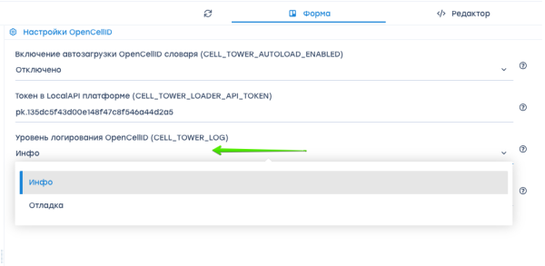 - CELL_TOWER_LOG - выберите уровень логирования OpenCellID.