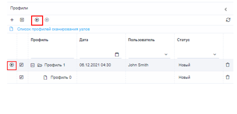 Чтобы запустить сканирование профиля, выберете профиль из списка и нажмите на кнопку «Запустить сканирование».