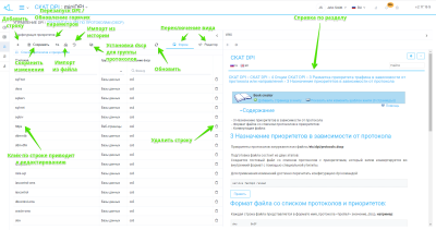 Редактирование производится в табличной форме. Для редактирования достаточно нажать по строке. При заполнении значений протоколов и dscp появляются выпадающие списки-подсказки.