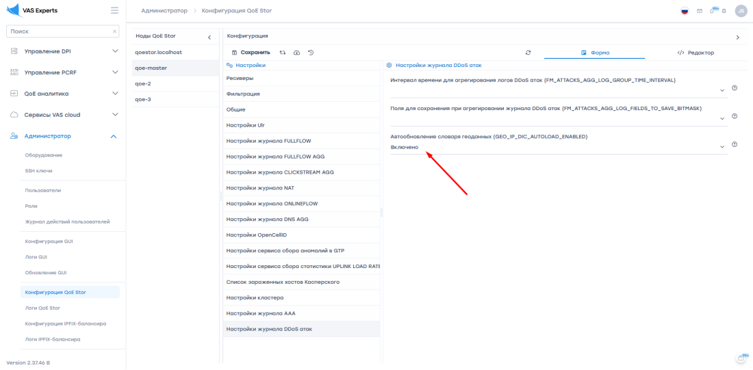 Для корректного отображения гео-отчетов DDoS-атак необходимо включить параметр GEO_IP_DIC_AUTOLOAD_ENABLED: