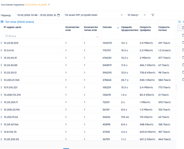 - Посмотрите раздел "ТОП атак по протоколам"