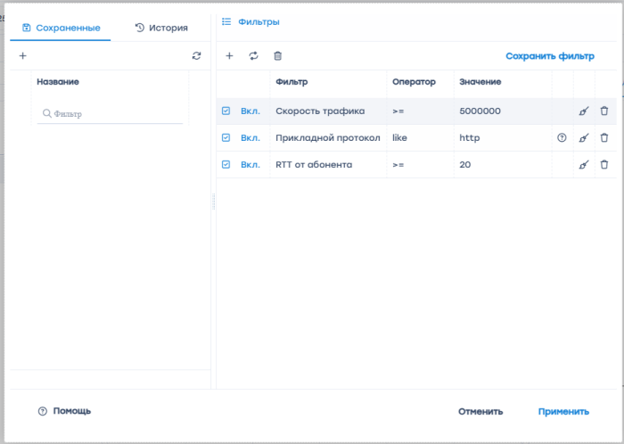 Фильтр можно настроить в GUI в разделе QoE Аналитика → Абоненты → Кликстрим