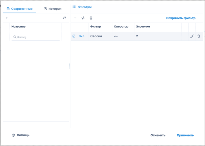 - Настроить новый фильтр запроса, внести туда эти списки.