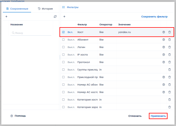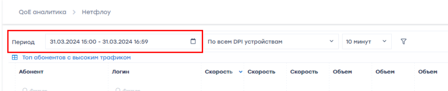 Фильтрация отчетов происходит в разделах QoE аналитики: Нетфлоу, Сырой полный нетфлоу, Кликстрим, Сырой кликстрим.