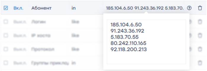 Применяется, если нужно отследить активность конкретного абонента, пула IP или списка абонентов.