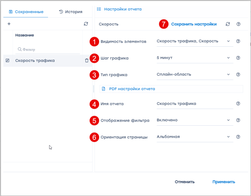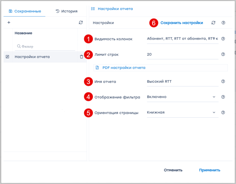 - По кнопке Сохранить настройки можно добавить измененные выше настройки в список для быстрого применения при составлении будущих отчетов.