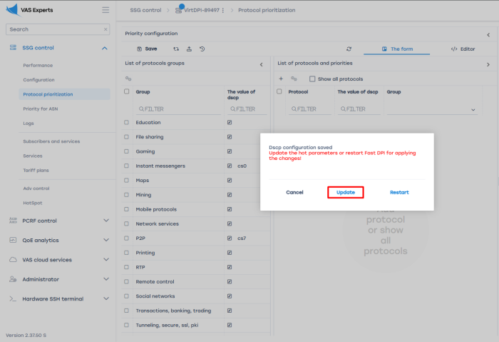 - Configure priorities. Go to DPI Management → Protocol Prioritization