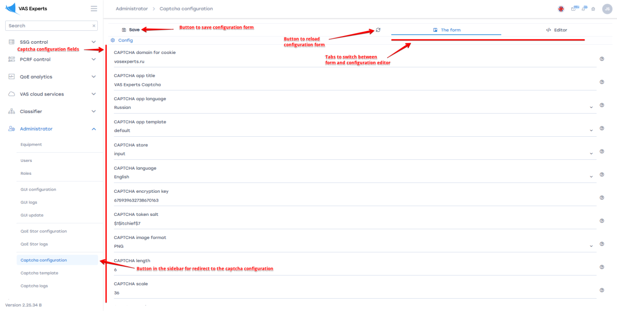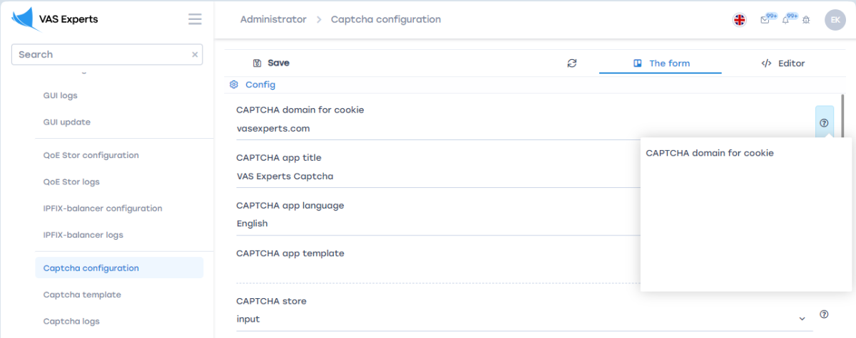 The CAPTCHA client configuration is performed through the form and editor or directly via the .env configuration file.