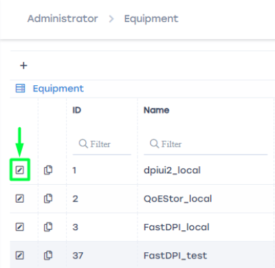 the equipment settings edit form will open. See the section Add (connect) a new server.