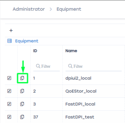To copy a server from the equipment list, click the Copy button next to the desired entry in the equipment list