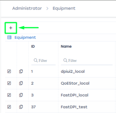 To navigate to the section, click the Administrator menu item, then click the Equipment menu item.