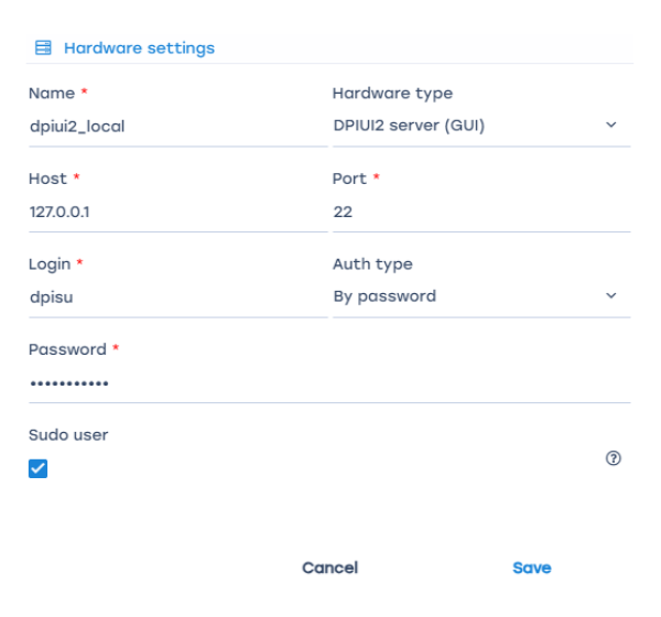 - Host – specify the IP address or hostname. The host must be accessible from the GUI server.