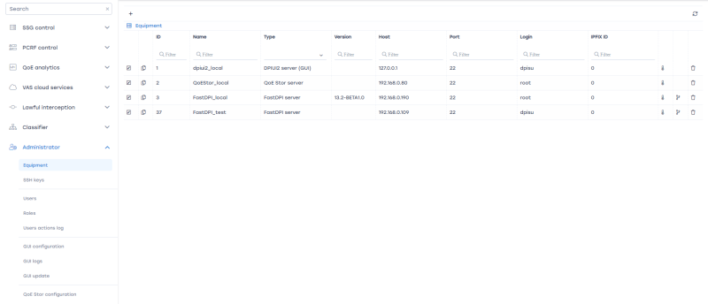 To delete a server from the equipment list, click the Delete button next to the desired entry in the equipment list