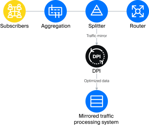 With the growth in the number of users and the increase in speed in tariff plans, the issue of significantly expanding traffic storage systems arises over time. SSG allows reducing the volume of traffic mirrored to the storage system by optimizing and filtering large volumes of data (heavy content), such as p2p (torrent), video in HD and Full HD formats, data from streaming services and video hosting. The approximate percentage of traffic optimization ranges from 20% to 70% depending on the traffic structure and the list of protocol signatures optimized for filtering.