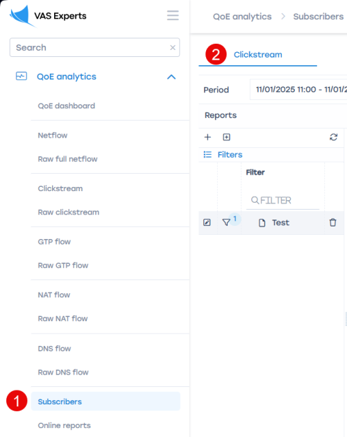3. Go to QoE Analytics → Subscribers → ClickStream