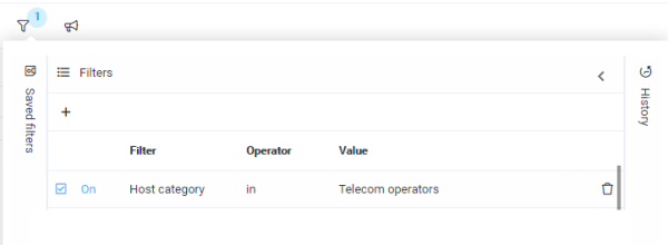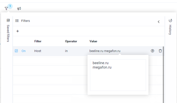 - Create a Host filter, use math and enter the regular expression `(?i)(\W|^)(smotreshka|ivi|okko|netflix)(\W|$)` to search for OTT services: