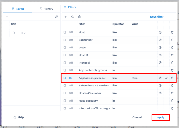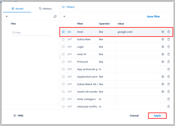 1. Select a filter. To search by IP — use “Subscriber”, to search by login — use “Login”;