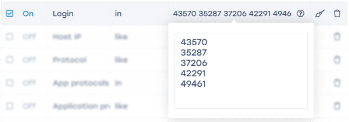 For filtering by a list of resources, follow the principle from Case 1. Searching for a subscriber in QoE → Subscriber list.
